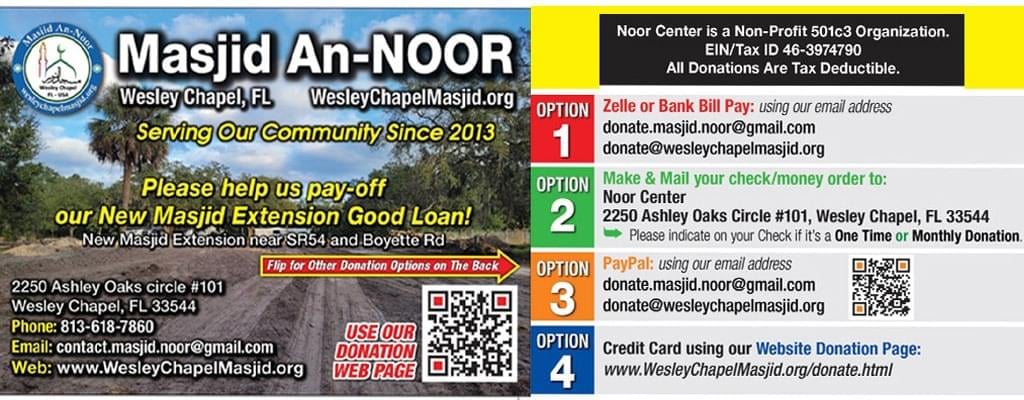 Alhamdulillah we have purchased our masjid lot in Central Wesley Chapel and need your help to finish the purchase commitment of $130,000 and $150,000 for land clearing, grading and county approval.